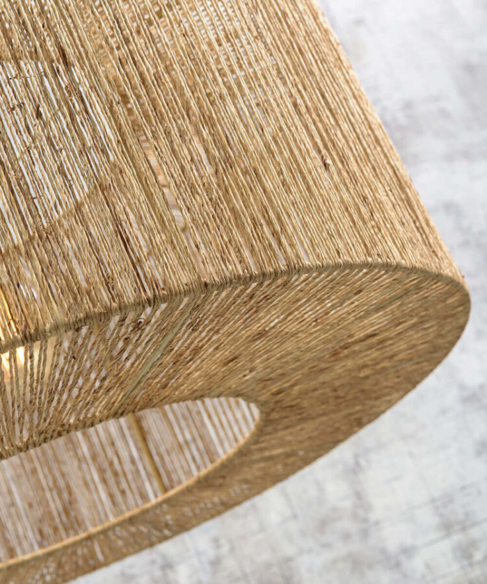 Le lampadaire IGUAZU est un exemple de la façon dont un design organique et des matériaux naturels peuvent créer un effet cosy.
